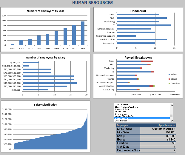 On trouve dans Excel de nombreux modèles de tableau RH comme celui-ci:
